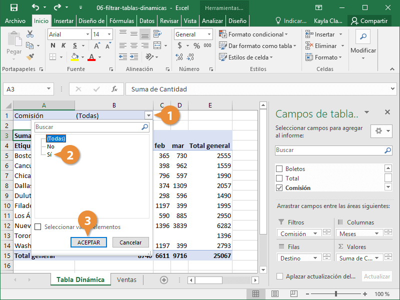 Al igual que con los rangos de datos básicos y las tablas en Excel, se puede filtrar una tabla dinámica para enfocarse en un segmento de datos más pequeño.