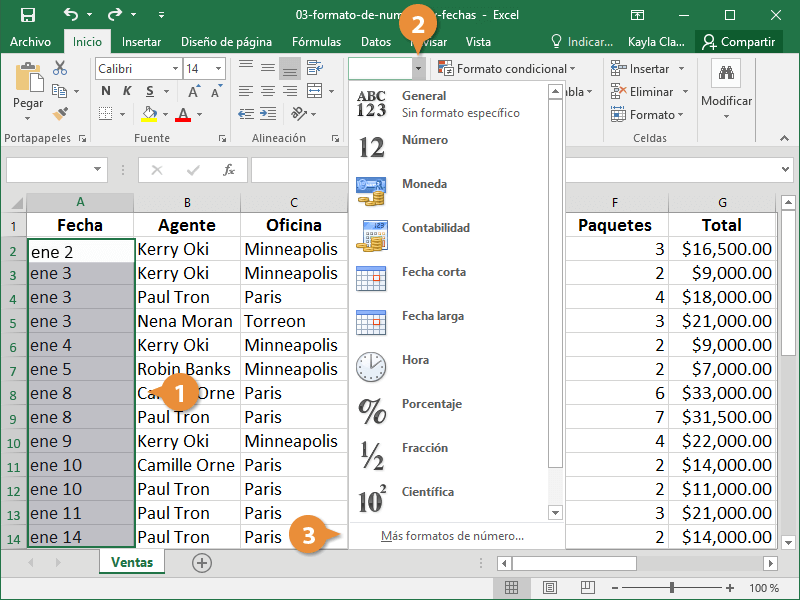 - Hacer clic en la flecha de la lista Formato de número desde la pestaña Inicio.