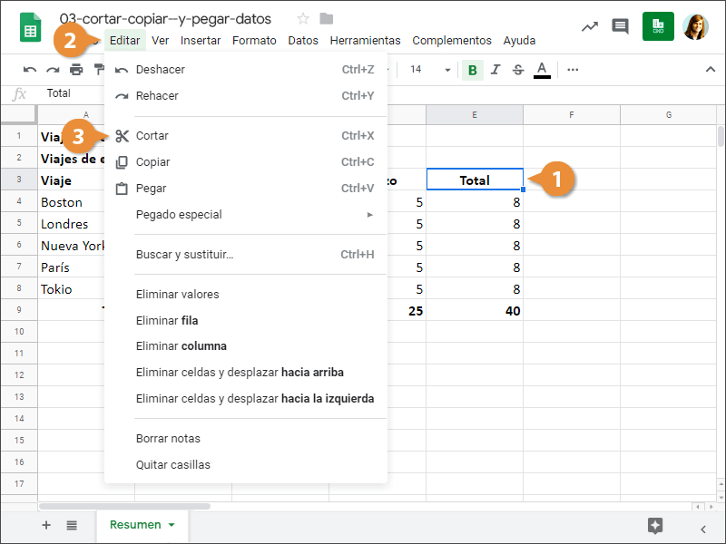 Cómo Cortar, Copiar y Pegar Datos en Google Hojas de Cálculo