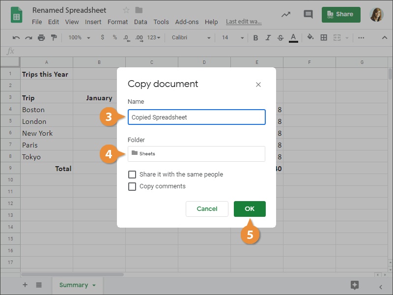 - (Optional) Specify the Folder where you want to save the copied spreadsheet.