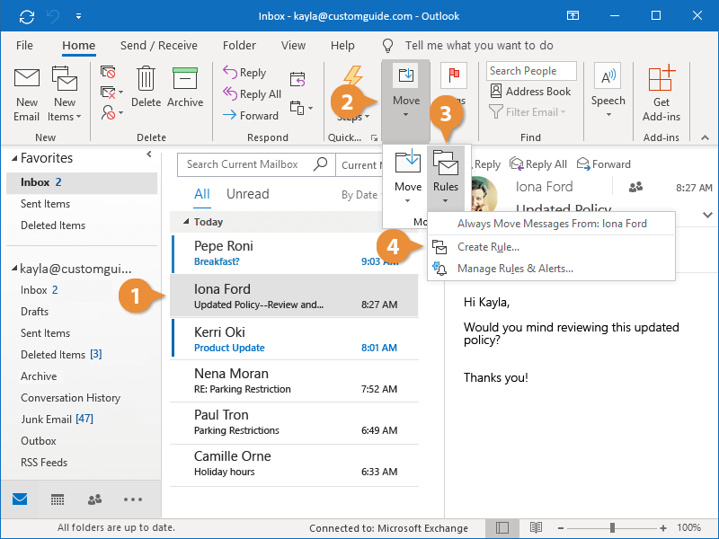 Rules are automated actions that are triggered whenever incoming mail meets specific criteria. This can help you keep track of your most important emails during a busy work day.