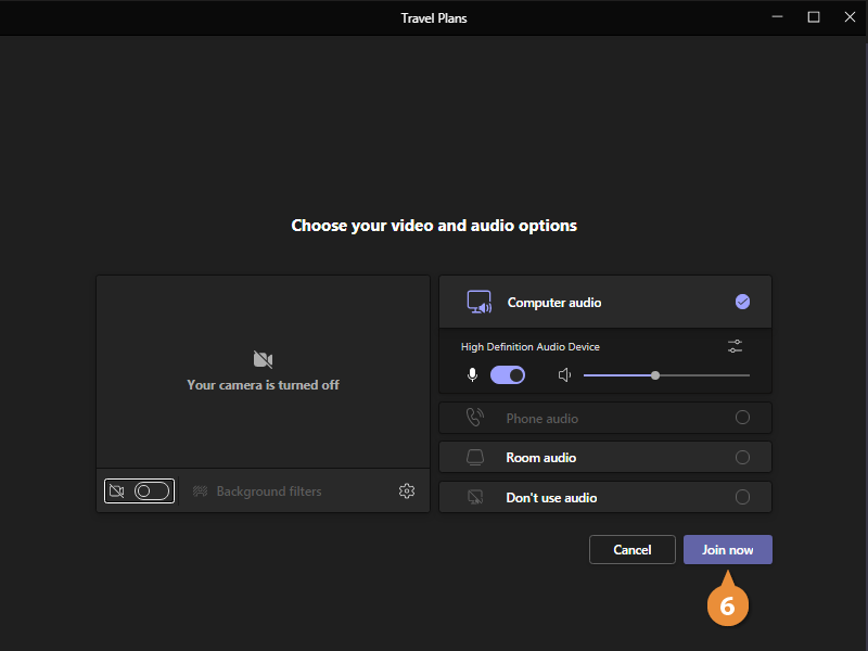 After you click Join, you’ll be prompted to configure your audio and video settings.