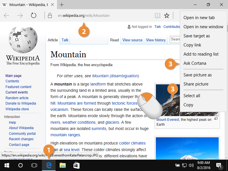 3. Right-click an image on the webpage, and then choose Ask Cortana.